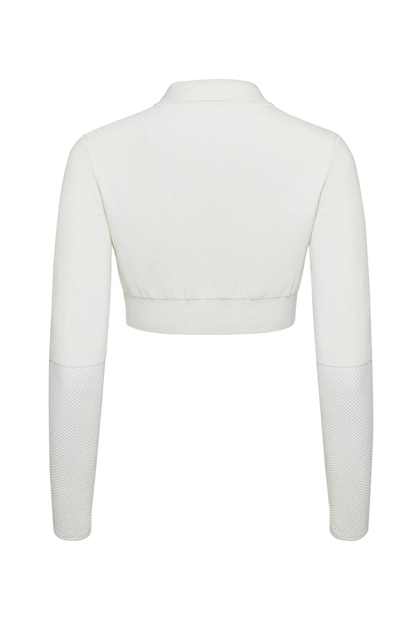 Kurz geschnittenes Top mit Mesh-Ärmeln, natürliche Baumwollfäden