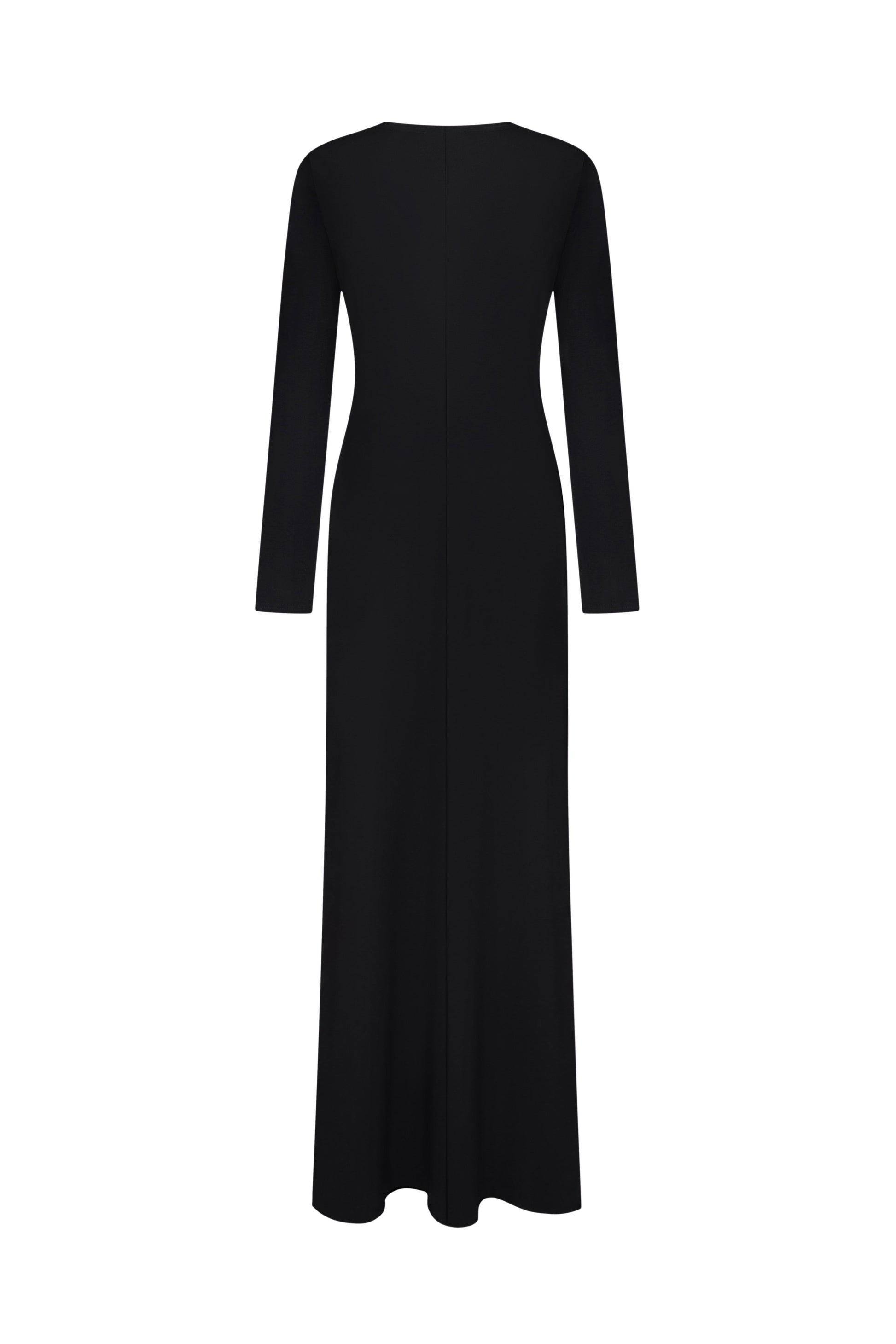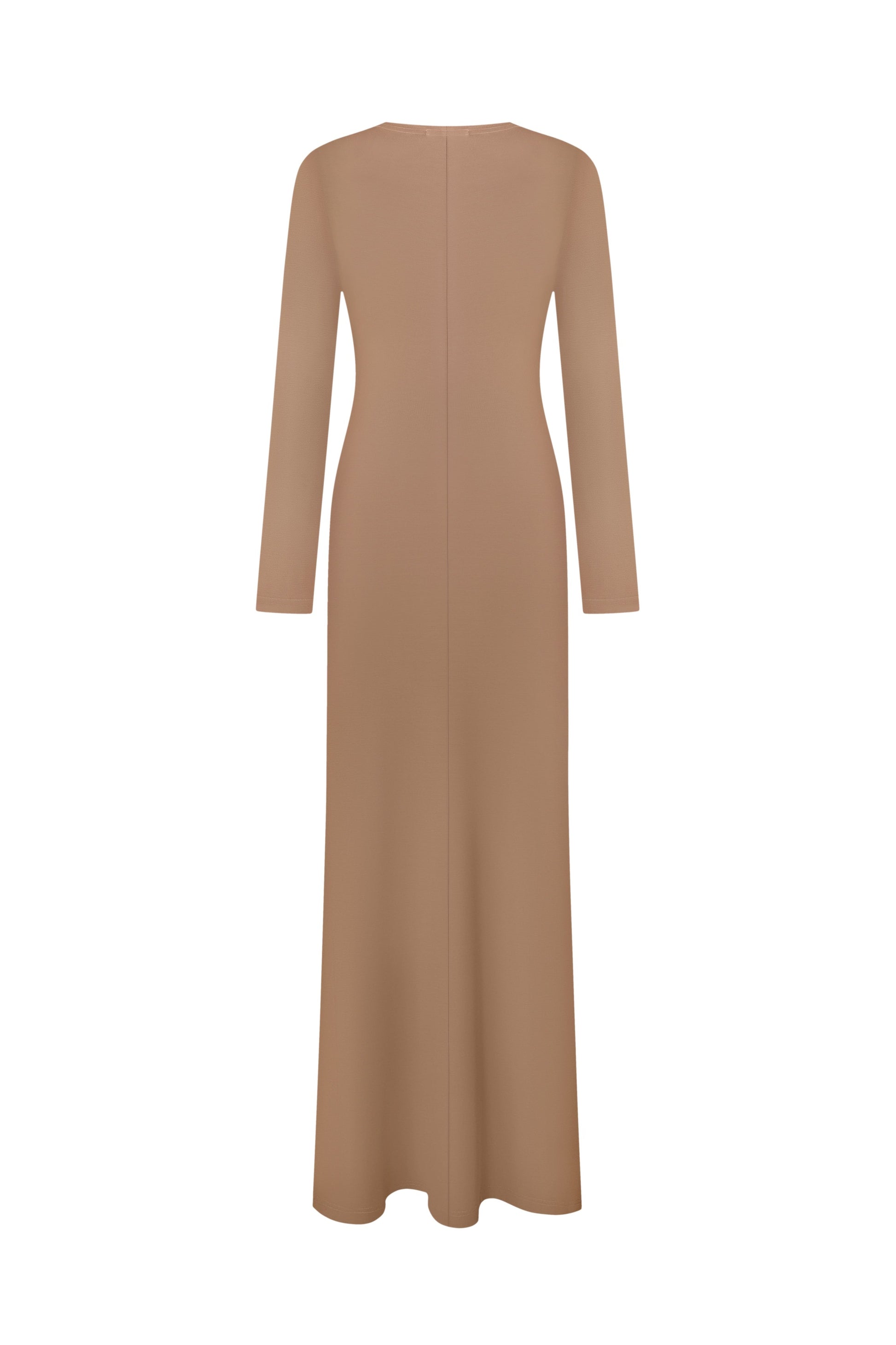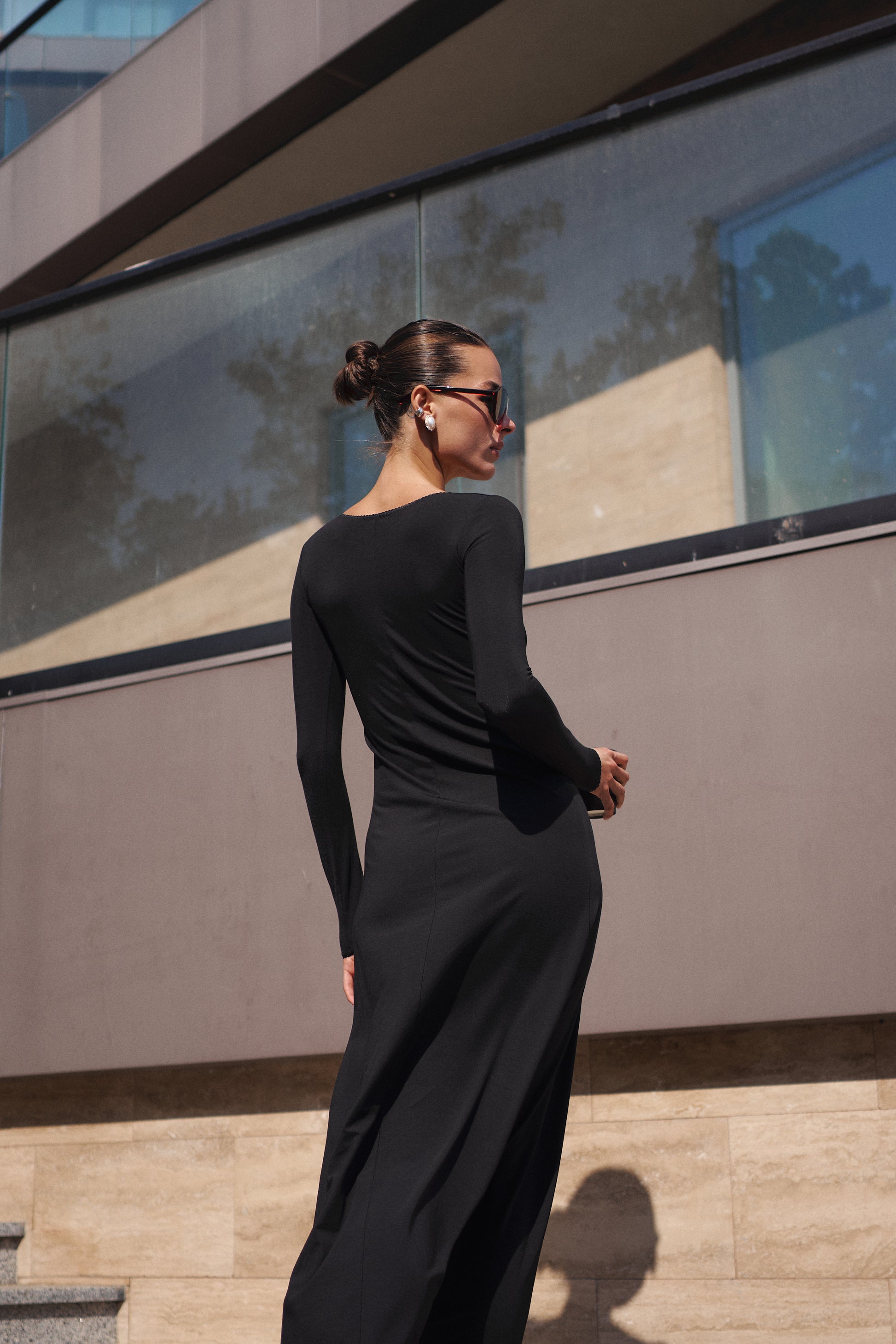 Maxi fitted dress with long sleeves, emphasizes the waist without hugging the hips, feels like a second skin. This is an independent model that goes well with a jacket, coat, leather jacket or hoodie, under sneakers, boots or shoes.