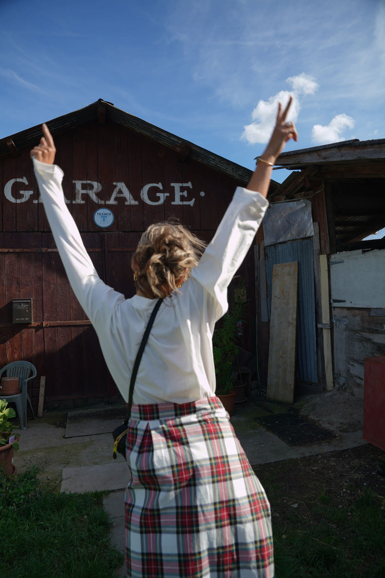 Relaxed tartan shirt. Styles well with jeans, skirts and loose-fitting trousers.